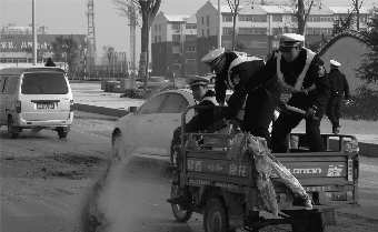 2月14日清晨,刚刚被大雪覆盖的临沂城区,路面积雪、结冰情况严重,道路冰滑难行,交警部门启动恶劣天气应急预案,同时民警纷纷上路,对市区道路上行坡段处,清理积雪,帮助车辆通行。