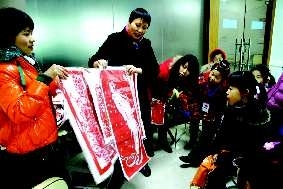 24日,鲁南商报的小记者们与临沂市的剪纸大师李玲面对面,向她学习了有关剪纸的知识,学习了剪纸的初级技巧,最后,李玲还送给每位小记者两张她亲自剪出的生肖图案和剪影。参加活动的同学们非常兴奋和激动,面对着美丽的剪纸作品,不时地发出惊叹声。