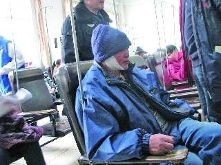 14日上午,记者接到线索称有人入室抢劫,还砍伤主人。随后,记者赶到伤者所在的海慈医院。在输液大厅里,只见受伤的李老汉,头上戴着一顶绿色的帽子,左眼被打青并肿得很高,从头顶缠了一圈绷带。记者从李老汉敞开的外套看到,老人内衣上全是血,一名警察正在椅子上做笔录。