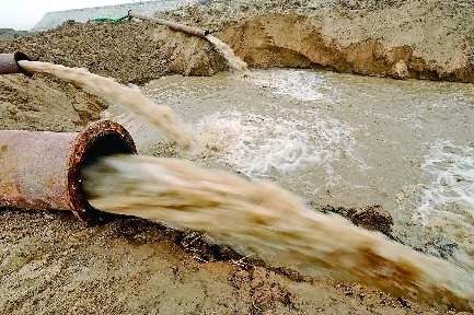 在东明县黄河谢寨引水闸,大功率的引水泵源源不断地将黄河水送向灌溉渠。由于黄河水位已经低于灌溉渠的引水闸,工作人员13日不得不临时将引水端堵死,用泥浆泵引水灌溉。本报记者 陈文进 摄