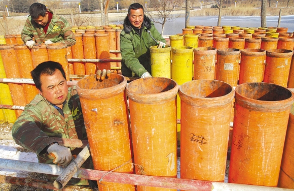 15日,2000多枚烟花炮管正在安装。17日,泰山广场将举办2011年元宵节焰火晚会,6种新型烟花将首次亮相。