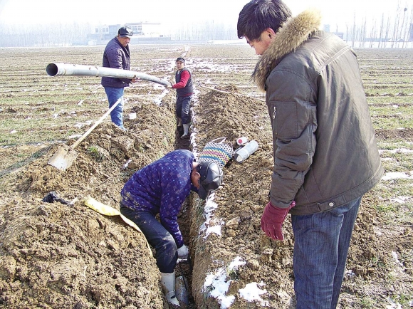 为了让这来之不易的水浇灌更多的麦田,边院镇还拨款帮助村民铺设管道,以便让井水可以直接流淌进地里。
