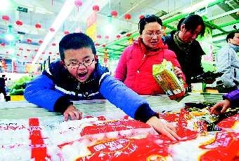 15日下午,顾客在市区沂蒙路一家超市内选购汤圆。据了解,虽然今年商家推出了买二赠二、赠送购物袋等促销活动,但受原材料价格上涨影响,今年品牌汤圆的价格较往年普遍涨了一成。