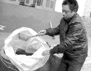 记者来到村民袁立安的家里。院子里的自来水已经没有了水。记者提出看看他家里的存水,他打开家里的水缸,水缸里有一个大大的塑料袋,塑料袋里面装着水。