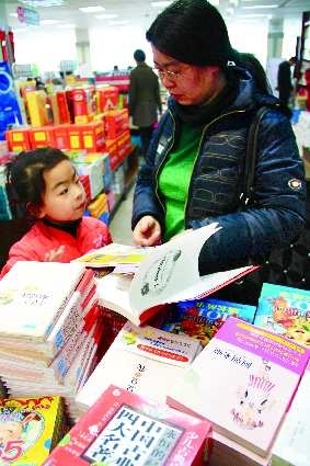 2月15日上午,在市区一新华书店内,学生家长正在选购教辅图书。