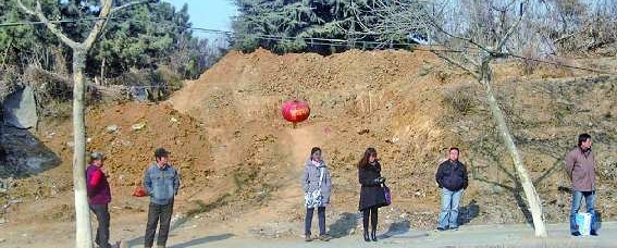 记者了解到,张先生说的这座山在水清沟的东边,因此附近的居民都称它为东山。东山共有三个小山头,两个在东北方向,还有一个在东南方向。下午1点左右,记者来到长沙路靠近宜阳路附近,看到了马路一侧这座被挖的小山。只见靠近马路的一侧,山头被挖了一个大窟窿,大约有五六米