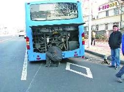 公交车司机一直在现场查看维修情况,他说,发生这样的事故的几率非常小,所幸并没有人员伤亡。