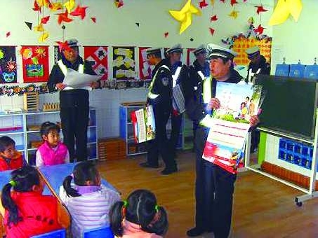 2月15日,东营市公安局河口分局交警大队民警进辖区各幼儿园,开展“关爱生命 从娃娃做起”的交通安全宣传活动。民警通过发放交通安全宣传漫画、彩页等多种方式,耐心的讲解交通事故案例,引导小朋友们应该如何遵守交通法规。 本报见习记者 王超 本报通讯员 付永春 张景霞 摄影报道