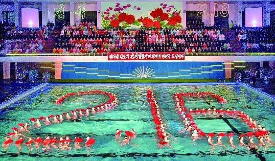 2月16日是朝鲜最高领导人金正日的69岁生日。朝鲜在平壤举行花样游泳表演,庆祝金正日诞辰69周