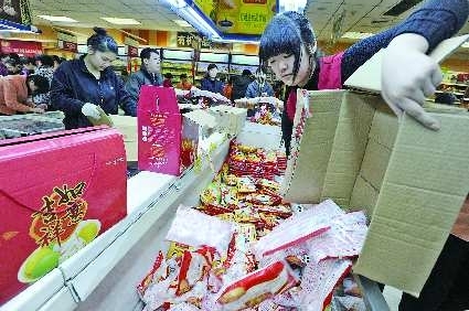 16日,在济南某大型超市内,市民们正在抢购汤圆。17日就是元宵节了,各超市内的汤圆专柜纷纷进行最后的促销,以吸引市民前来购买。 本报记者 王媛 摄