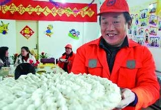 16日早上,在元宵佳节即将到来之际,历下区甸柳四居居委会组织社区居民,与甸柳环卫所的环卫工人一起包水饺、煮元宵,同庆元宵节。