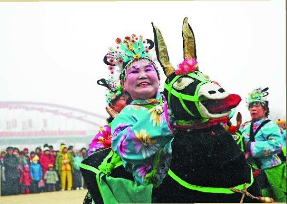 9时30分许,随着一阵震天鼓声,2011年元宵民俗文艺展演拉开帷幕。鼓子秧歌、九龙闹春、跑驴、威风锣鼓等一个个精彩的节目呈现在广大市民面前,赢得了观众的阵阵喝彩。