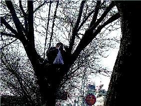 作品描述:正月十二市里举行秧歌大会,围看的群众人山人海,这位老兄索性爬到树上看个仔细。