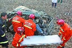 由于在现场没有发现驾驶员,而有目击者称,越野车是先撞上沟边的土堆后翻下沟的,车祸后驾驶员离开了现场。消防战士将车门撬开,把二人抬出,用担架抬上了120急救车,送往医院治疗。
