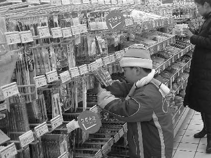 随着各中小学开学时间的临近,学习用品成了超市销售的主角。16日,记者在济宁城区的一些超市内看到,各种学习用品都被摆在了超市内促销的显眼位置。许多学生和家长扎堆前来挑选。 本报见习记者 韩玉贤 摄