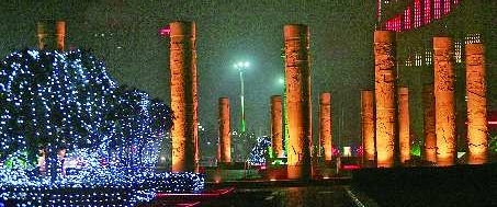 人民公园、百花公园、全民健身广场、新世纪广场周边设置了大量兔子造型的灯饰,各种标语向全市人民送上了美好的祝福。师专岗、市委岗、渔山岗四角绿地也增设了部分品位高、艺术性强的亮化造型,构建了景观灯群体,把节日中的城市装扮得亮丽多彩。