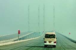 2011年初,在太平洋东海岸的胶州湾中,世界上最长的跨海大桥,青岛海湾大桥即将落成。中国经济网援引英国《电讯报》的文章中说:“这座长达26.4英里的大桥将把黄岛与青岛市区连接起来,长度超过了目前排名世界第一的美国新奥良Lake Pontchartrain Causeway跨海大桥(24英里),这座大桥将成为中国崛起和经济腾飞的新象征。”