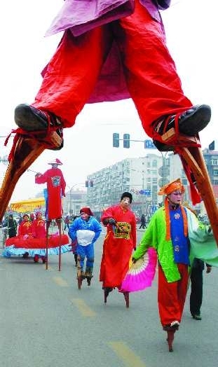 大观小超高跷队是济 南市的一家民俗表演队伍,
