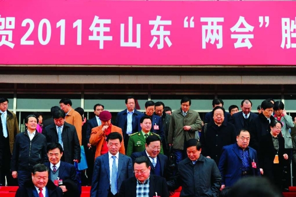 17日下午,省十一届人大四次会议闭幕。图为与会的省人大代表走出会场。 本报记者 邱志强 摄“春晓2011”山东省两会特别报道详见?A02-A06