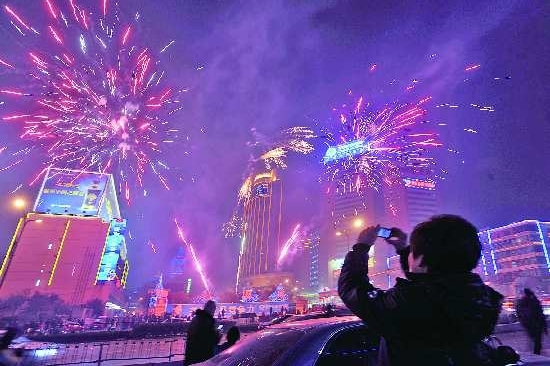 17日,元宵夜,夜空中绽放的节日礼花把省城济南装扮得分外绚丽多彩。市民纷纷涌向泉城广场等繁华地段,看焰火,赏花灯,欢度元宵夜。 本报记者 徐延春 摄