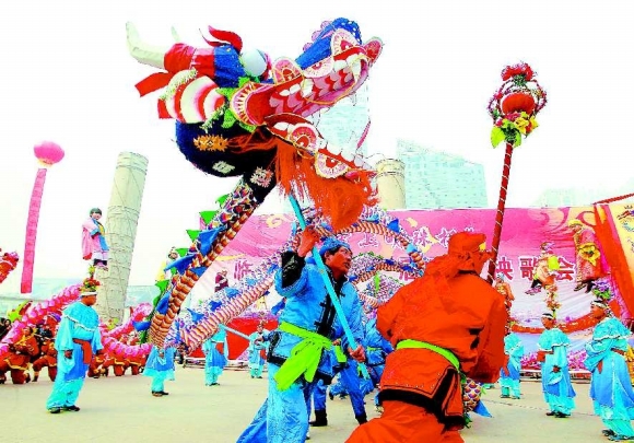 2月17日上午,临沂市第十一届“掌上明珠杯”民间秧歌会在临沂人民广场展演,全市共221支秧歌队参加,吸引了近万名市民观赏。本届民间秧歌会活动异彩纷呈,广大演职人员通过秧歌、龙灯、旱船等多种形式,展现了富有浓郁地方特色和鲜明时代特色的沂蒙民间文艺。