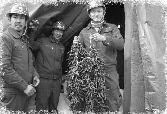 17日恰逢元宵佳节,一大早,热情的对荆峪村村民就提着汤圆、花生油以及四川人爱吃的红辣椒来到工地,送给正在打井台上工作的队员们。
