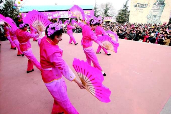 17日,在烟台市博物馆,老建筑内庆祝元宵的表演吸引了大量游客观看。本报记者赵金阳 摄