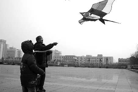 2月17日,西城胜利广场上,市民刘先生带着5岁半的小孙子在广场上放起了风筝。元宵节当日,很多市民纷纷走出家门,到户外欢度元宵节。 本报见习记者 段学虎 摄影报道