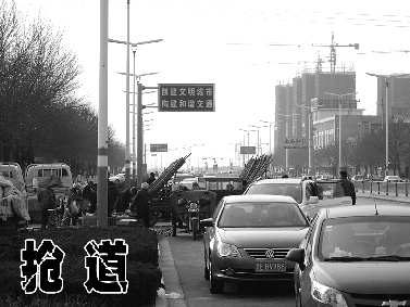 2月17日下午3时许,记者途经黄河路与西四路交叉口以东时发现,路南商贩摆的摊点占据了机动车道,甚至购物的车辆也停到了车道上,严重影响了过往车辆的正常行驶。 本报见习记者 顾松 摄影报道