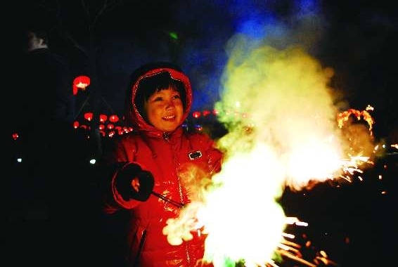 3.小朋友兴奋地燃放起手持烟花。