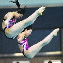 2月20日,中国选手王涵/郑曲琳在比赛中。当日,在2011年国际泳联跳水大奖赛马德里站女子双人3米跳板比赛中,王涵/郑曲琳以320.10分的总成绩夺得冠军。