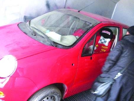 20日上午,记者在北园路山东汽车城一家汽车美容喷漆厂见到了市民石女士和她的爱车。石女士说,为了接送孩子上下学,今年1月她买了这辆红色轿车,刚跑了1000公里。