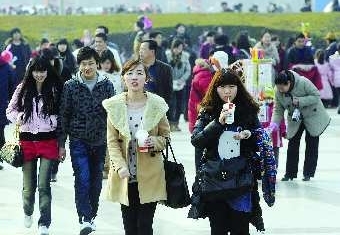 20日,在泉城广场上,两位女孩喝着可乐走在阳光下。当日济南最高气温达到11℃,不少市民感叹,今年春天来得似乎比去年早了好多。