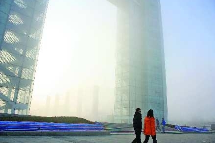 20日15时多,一场大雾从海上袭来,整个滨城迅速笼罩在雾中,能见度小于500米。据悉,此次大雾主要是由于天气回暖,海洋表面形成海雾,顺着强势的东北风吹至陆上所致。图为幸福门在大雾中隐约可见。