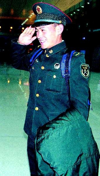 本报2月20日讯20日21时20分,在临沂机场出口处,身穿军装的万明山一出现立刻引来众多媒体关注,摄像机、录音机、录像机将他紧紧包围起来。面对如此庞大的阵容,万明山一个标准的军礼打起来,更显英俊潇洒。