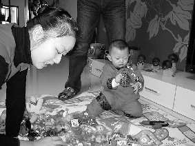 20日,记者到柳小鹏家的时候,小鹏的妈妈为记者开门,小鹏以为妈妈要走,坐在一堆玩具上便哇哇大哭起来。小鹏妈妈说:“16号是柳小鹏的生日,整一周岁了,别看他不会说话,心里明白着呢。”