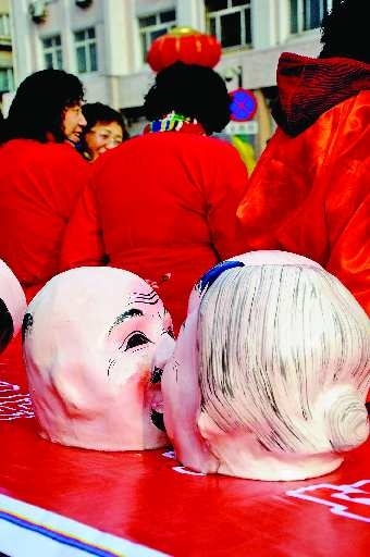自述:春节扭秧歌,休息时,“大头”碰巧被摆放成这个样子。