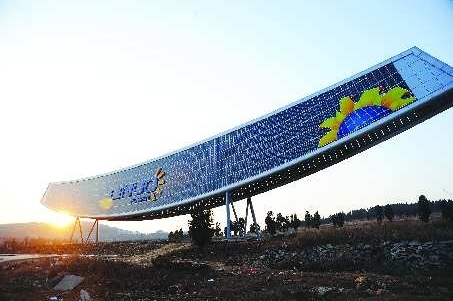 中国最大的光伏地标建筑—“——力诺之翼”近日竣工,它位于济南市经十东路力诺阳光科技园内,是一个立体式光伏电站,总长度为120米,高20米,年可发电量为24万KWh。