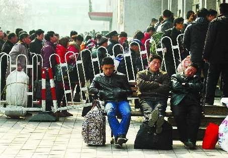 今年春运接近尾声,客流人数开始回落。21日,德州火车站发送旅客近万人,其中以学生流和外出务工流为主。图为,几位在德州火车站等车的旅客“忙里偷闲”坐下来打个盹。
