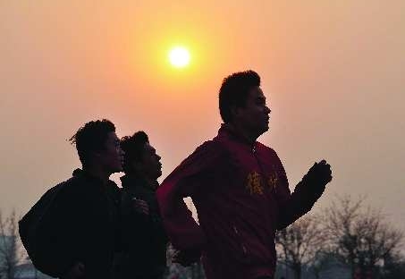 2月21日,刚迎来新学期的德州二中学生们在德州世纪广场训练,他们中一部分学生已经参加过省内的体育高考,并在准备接下来的其他学校的考试。