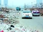 21日,记者在轸大路北段蒲子庄附近路段看到,在接近1公里的距离内,路两边几乎堆满了渣土、石块之类的建筑垃圾,还有一部分是生活垃圾。刮风的时候,一些塑料袋便会飘在空中,或者挂在路边的树上,许多行人通过此处时不得不捂住口鼻。