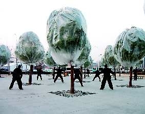 拍摄时间:1月9日拍摄地点:河南郑州作品描述:那天去郑州游玩正巧路过一处休闲广场,发现一棵棵树都穿着用塑料布做的保暖衣,挺立在寒风中显得很有意思,堪称一景。作者:余跃军奖金:20元