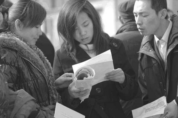 任女士手拿一摞招聘简章,认真地阅读简章上的内容。她说,她和丈夫在江苏打工了六年,现在孩子都四岁了,他们想回家工作,“在外地工厂里打工很累,家里根本顾不上,每年也只能回家一两次,这次在家门就能找到工作,招聘会很及时。”