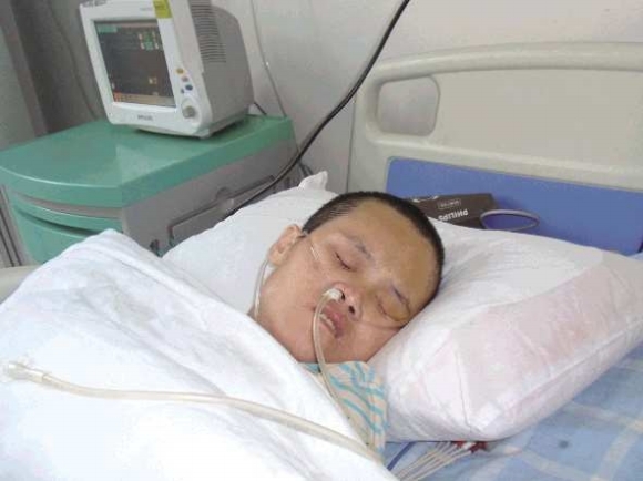2月21日下午1点,在茌平二院重症监护室,处于昏迷的该女子躺在病床上输氧。病房护士说,1月21日晚10时许,该女子被120救护车送进医院,当时诊断为脑干出血、颅骨破裂,深度昏迷。经一个月治疗,女子仍处于浅昏迷状态,吞咽和语言功能未恢复。