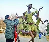 森林公园的雕塑很讨人喜欢。 本报记者 王光营 摄