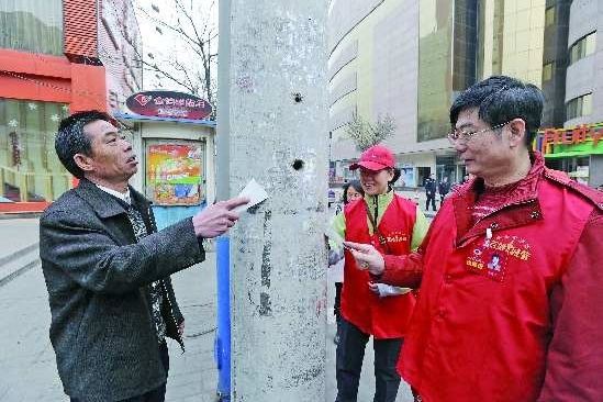 在清理活动中,代表委员们看到墙上、柱子上、电线杆上的小广告,都纷纷拿起手中的工具进行清理,大部分广告由于贴得非常牢固,他们和百姓城管费了好大劲才清理干净。