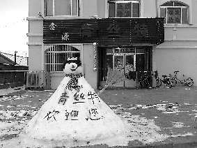 作品描述:一理发店前的雪人俨然是位“迎宾小姐”,既美观又能招揽生意,还不怕风雪。