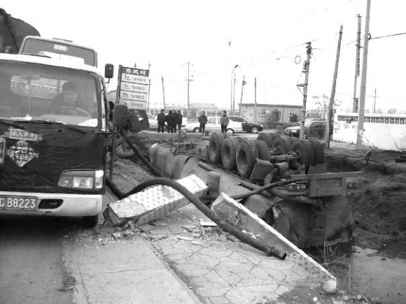 22日凌晨3时许,东营市交警一大队四中队民警巡逻至东风村附近时发现一油罐车翻车。据介绍,本次事故中没有人员伤亡,目前事故正在进一步调查中。 本报见习记者 段学虎 顾松 本报通讯员 孙涛 王新海 摄影报道