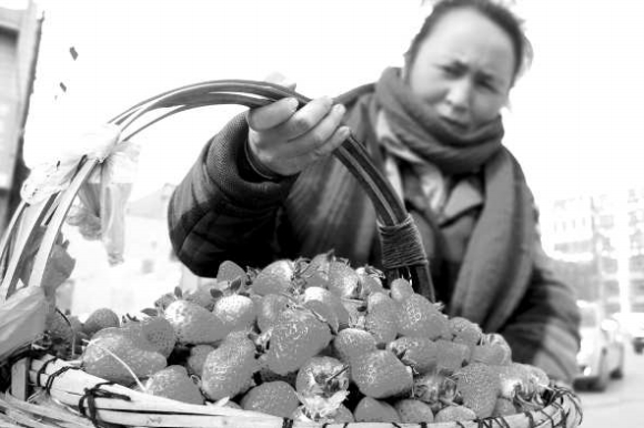 春节后,草莓由节前15元/斤-18元/斤降到7元/斤。22日,花园路上一个水果店老板介绍,本地草莓上市是草莓降价的主要原因。本报记者邹俊美 摄