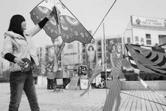 “草长莺飞二月天,忙趁东风放纸鸢。”随着天气转暖,不少人走出家门放风筝。图为:22日,一位市民在人民广场上挑选风筝。